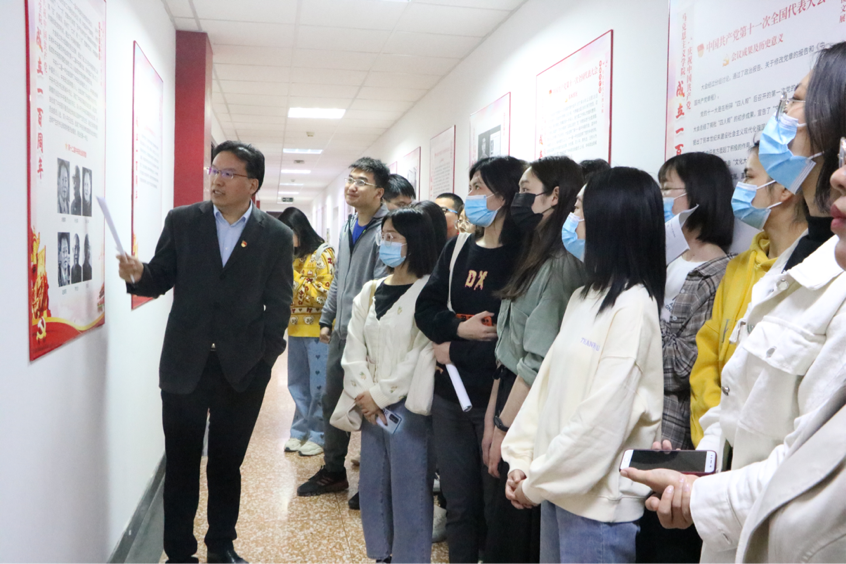 接着,孙平带领学生宣讲团全体讲解员以历次党代会发展为主线,依次对每一块展板进行了讲解培训,既考虑整体框架,又突出重点部分,既有党的历史事件详细讲述,更有马克思主义的立场、观点、方法的体现。孙平强调,历史是最好的教科书,中国共产党在马克思主义理论的指导下,牢记初心和使命,坚持人民立场和为人民服务的宗旨,带领中华民族克服了一个又一个困难,实现了从站起来到富起来,再到强起来的历史飞跃。站在建党百年之际回望历史,我们能深切感受到没有共产党就没有新中国,只有中国共产党才能救中国,才能发展中国。全体同学要不断增强“四个意识”、坚定“四个自信”、自觉做到“两个维护”,明理增信、崇德力行,为实现中华民族伟大复兴的中国梦而不懈奋斗!