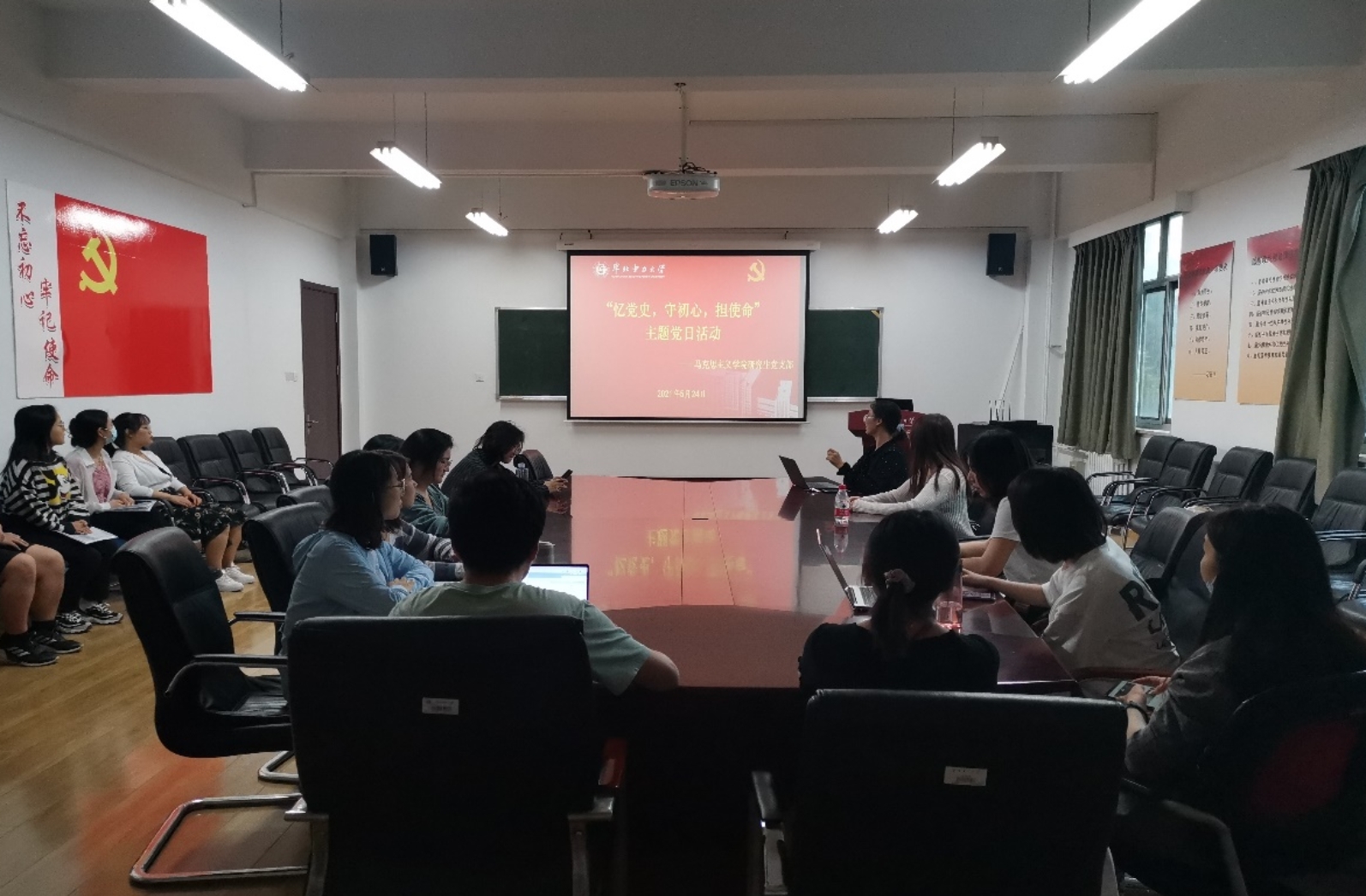 为落实好习总书记“学党史,悟思想,办实事,开新局”的重要讲话精神,进一步强化党员党性修养,激励各位党员不忘初心,牢记使命,5月24日下午,beat365中文登录入口研究生党支部在教三C220开展了“忆党史、守初心、担使命”思想大讨论主题党日活动。活动由研究生党支部书记刘彩霞主持,支部全体成员进行了热烈讨论。