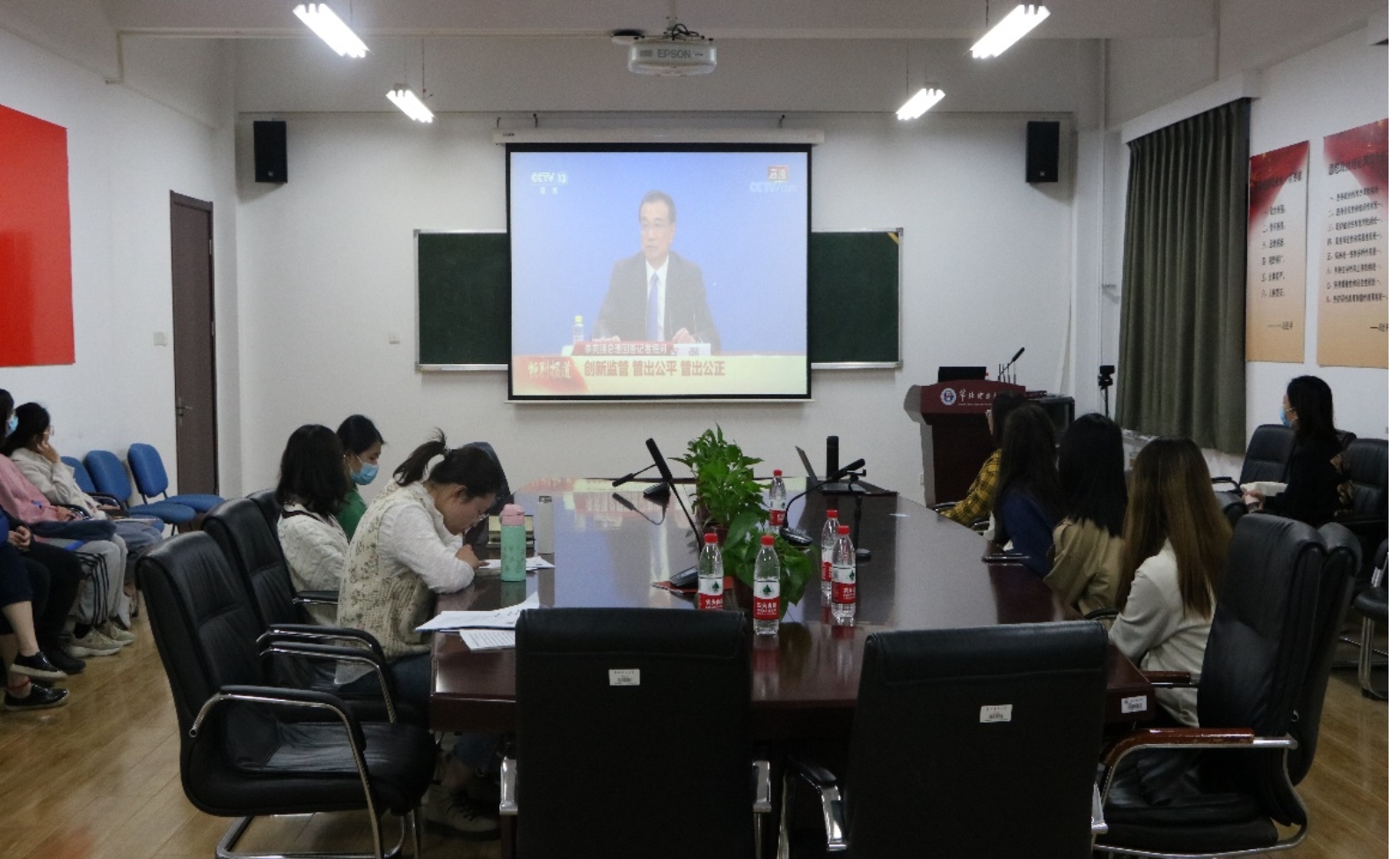 然后,大家共同观看了李克强总理出席记者会并答中外记者问视频节选,视频中新华社记者提到经济问题,总理的回答紧紧围绕激发市场主体活力这一主题,强调“围着市场主体转”“让市场唱主角”,并且指出要从三大方面聚焦“市场的力量”,一是保市场主体生存和活跃,稳住经济基本盘。二是发挥市场主体对稳就业、扩就业的支撑作用。三是通过市场化普惠制的办法,强化市场主体在科技创新中的地位作用。看完视频后,同学们反响热烈,纷纷表示对激发市场主体活力有了更加全面深刻的认识,“市场主体”一时间成为了大家互相交流探讨的高频词。
