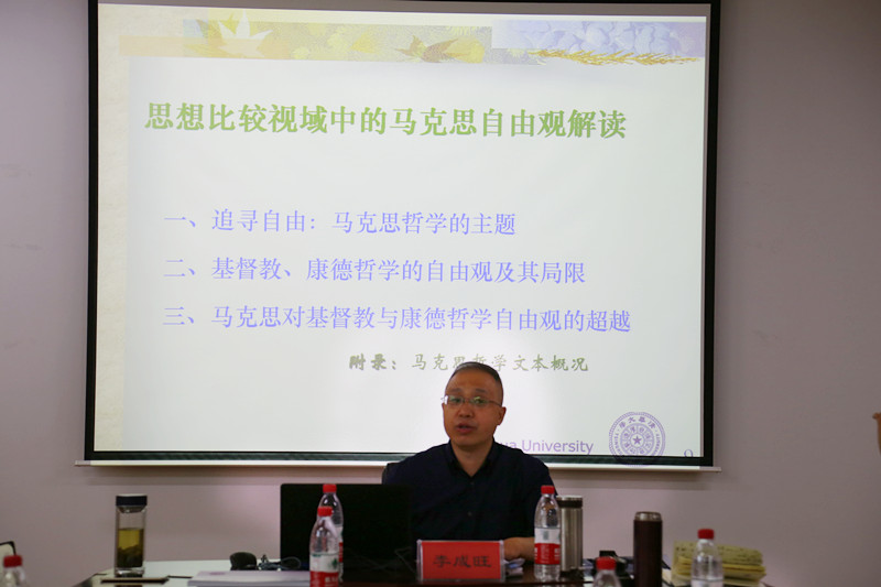 按照beat365中文登录入口教育教学大讨论工作部署,5月26日上午,清华大学beat365中文登录入口长聘副教授、博士生导师李成旺应邀来beat365官网作学术报告。报告会由beat365中文登录入口党总支书记蔡利民主持,学院副院长孙平及部分师生出席了本次报告会。李成旺老师首先围绕“科研工作支撑教学和人才培养工作的路径”这一主题谈了自己的感想。随后,李成旺老师结合自身研究《德意志意识形态》的学术历程,以“思想比较视域中的马克思自由观解读”为题做了专题报告。李老师的报告内容脉络清晰、学理性强,师生们都表示受益匪浅。
