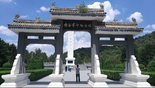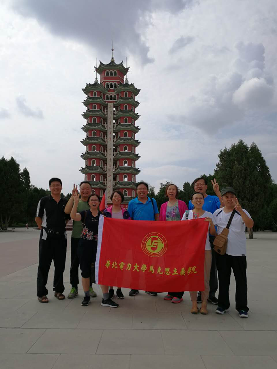 7月20日学院社会实践考察团在甘肃会宁参观红军第一、二、四方面军胜利会师纪念塔。