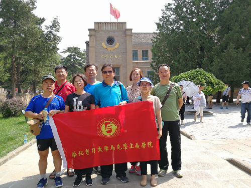 参观杨家岭革命旧址,并在七大会址大礼堂前合影。