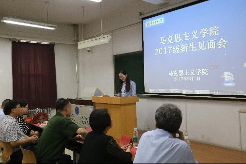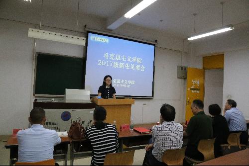 2017级研究生新生代表刘洋洋发言。她说,相聚是一种缘分,很荣幸加入马院这个大家庭。她认为,研究生阶段,要尽快转变学习方法,加强学习自主性,忘记曾经的荣誉和骄傲,投入到新的学习生活。作为思想政治教育专业的学生,要积极响应党中央的号召、认真学习贯彻习近平总书记的系列讲话精神,树立远大的理想和信念,自觉把个人理想融入到国家和民族的事业中,勇做走在时代前列的奋进者、开拓者。