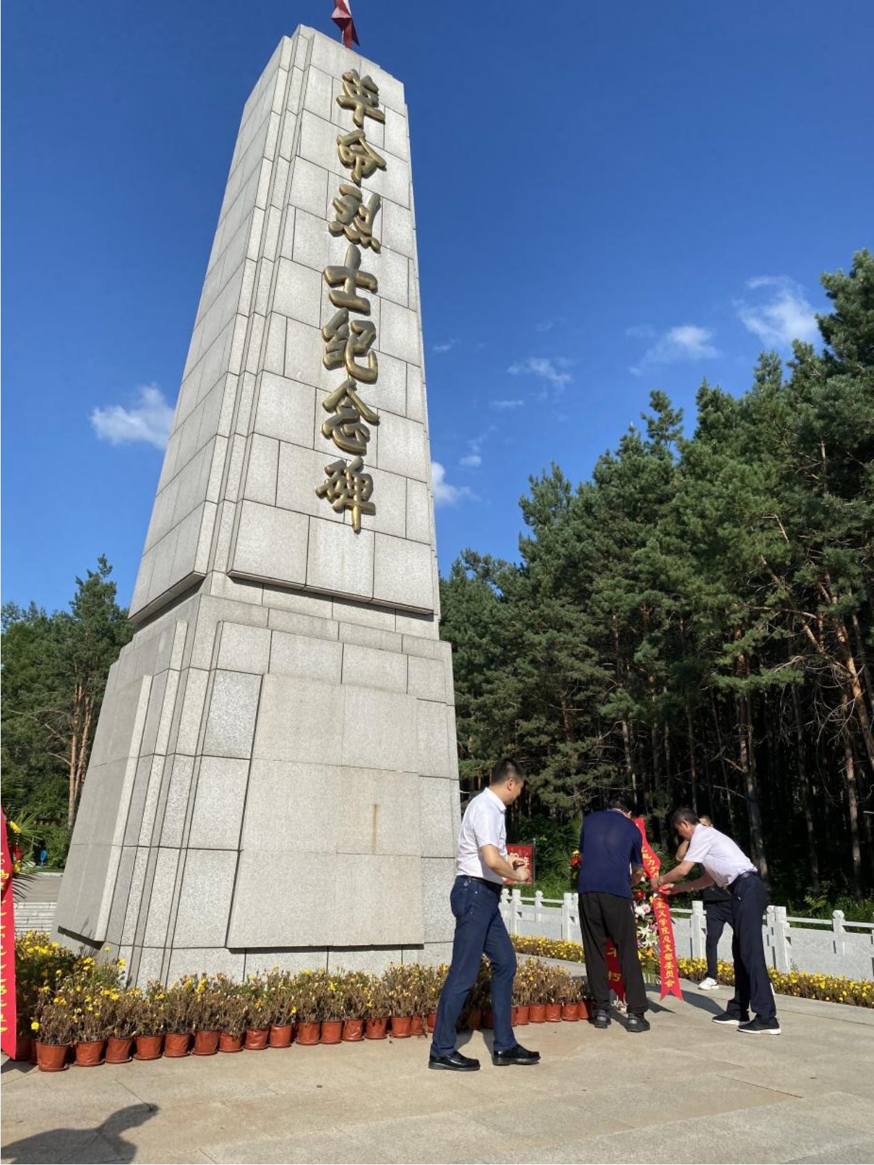 19日下午,实践团来到吉林省磐石市革命烈士陵园,举行beat365中文登录入口党史学习教育基地挂牌仪式和向烈士纪念碑敬献花篮仪式。“九·一八”事变后,中国共产党在磐石创建了抗日游击根据地,是党在东北地区最早创建的抗日根据地之一,同时也是中国共产党领导下最早的抗日武装之一——磐石赤色游击队的诞生地,是东北抗日联军第一军的摇篮,东北地区执行党的抗日民族统一战线政策最早的地方。
