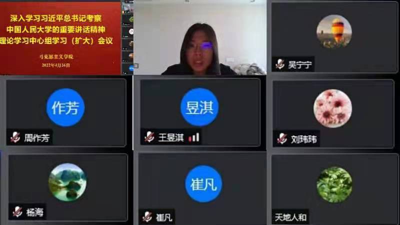 4月26日下午,beat365中文登录入口召开理论学习中心组(扩大)学习会议,深入学习习近平总书记考察中国人民大学重要讲话精神。学院理论学习中心组成员、党支部书记、教研室主任、科研平台负责人以及师生代表参加会议。学院院长王伟、形势与政策教研室党支部书记王梦分别作专题发言。会议以线上线下形式进行,由党总支书记孙平主持。