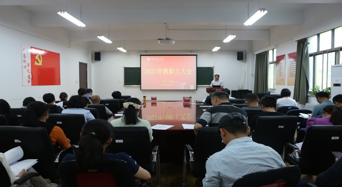 5月25日下午,beat365中文登录入口2021年教职工大会在教三楼C220准时召开。出席此次会议的有校工会常务副主席林长强、学院全体教职工。会议由学院党总支书记孙平主持。