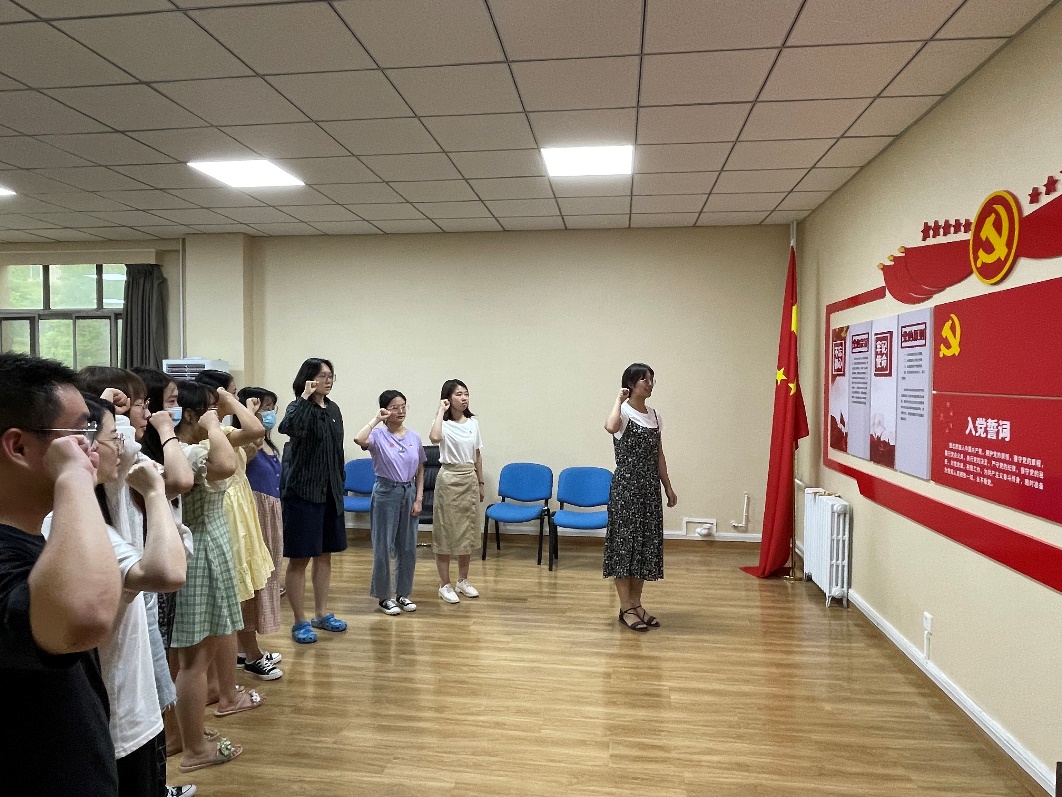 铮铮誓言犹在耳,拳拳之心永向党。研究生党支部书记刘彩霞以身作则,示范宣誓,各位党员紧跟步伐,纷纷重温入党誓词。“入党誓词全文是我志愿加入中国共产党,拥护党的纲领,遵守党的章程,履行党员义务,执行党的决定,严守党的纪律,保守党的秘密,对党忠诚,积极工作,为共产主义奋斗终身,随时准备为党和人民牺牲一切,永不叛党。”一字一句铿锵有力、语气坚定、震撼人心,表达出一心向党、誓无二心的坚定决心。重温入党誓词,就是要不断唤醒自己作为在共产党员的身份,以特殊的身份感唤起沉甸甸的责任感和历史使命感。
