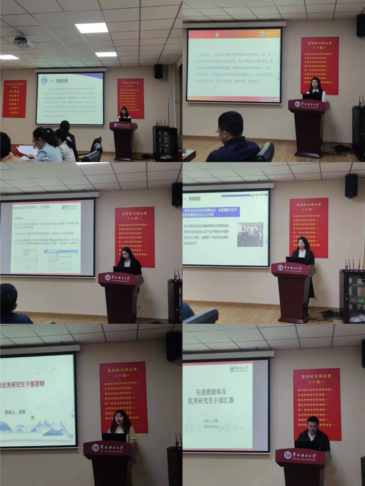 接着,参加答辩的六位研究生裴泽渝、袁新月、王珮璇、张路颖、吕爽、李超依次就思想建设、科研学习、工作、实践等方面进行自我展示及现场答辩。