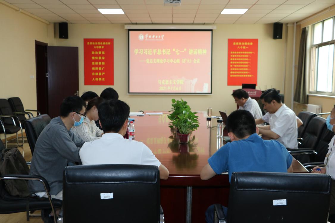 为了深入贯彻落实习近平总书记在庆祝中国共产党成立一百周年大会上的重要讲话精神,进一步提高政治站位,切实把思想和行动统一到“七一”重要讲话精神上来,7月6日上午,beat365中文登录入口理论学习中心组集中专题学习“七一”重要讲话精神。学院班子成员、各教师党支部书记、各教研室主任、各科研平台负责人参加会议,本次会议由学院党总支书记孙平主持。