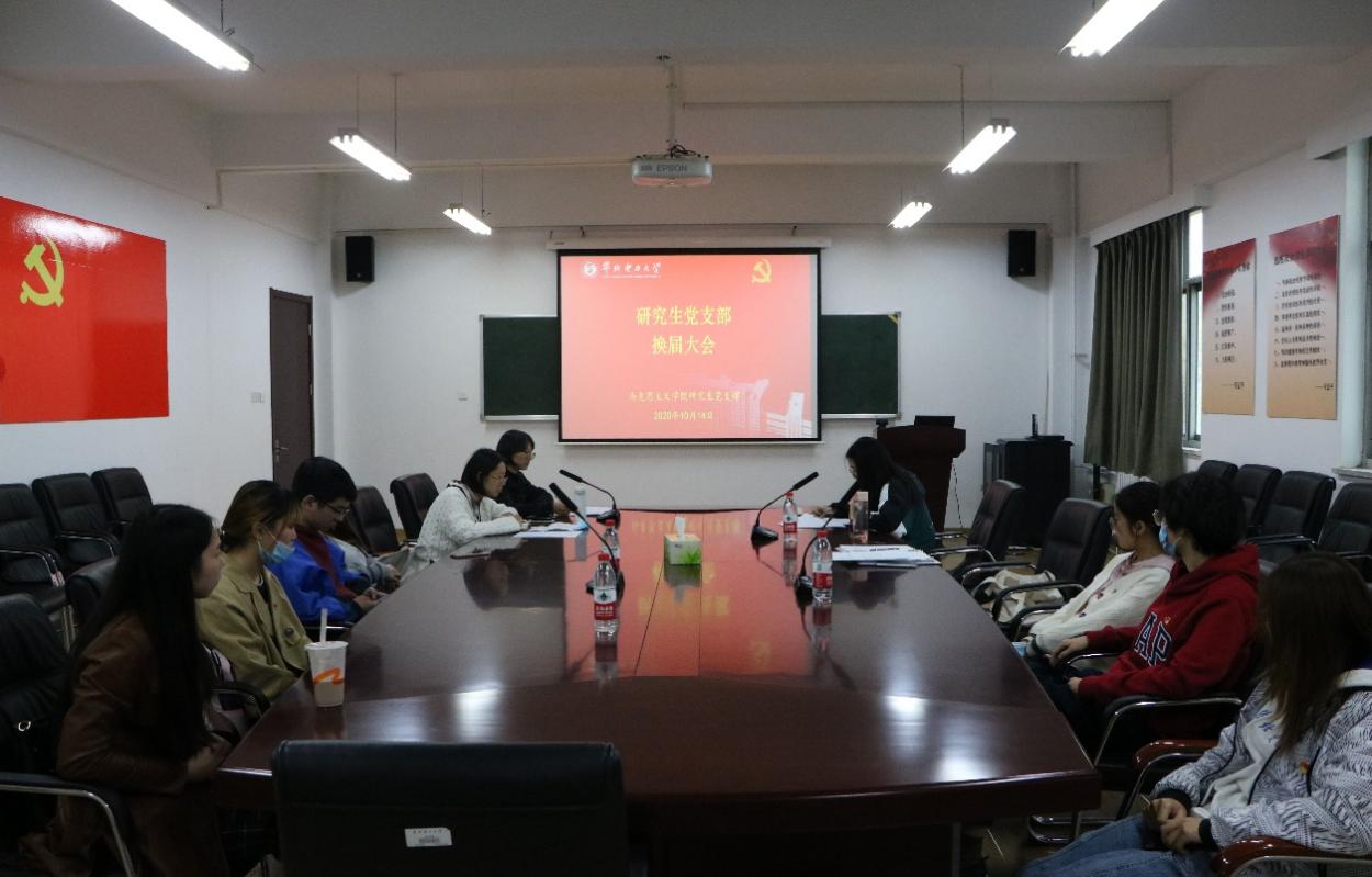 2020年10月14日下午,beat365中文登录入口于教三C220会议室召开研究生党支部换届大会。本次会议由党支部书记王天昕主持,全体研究生党员参会。