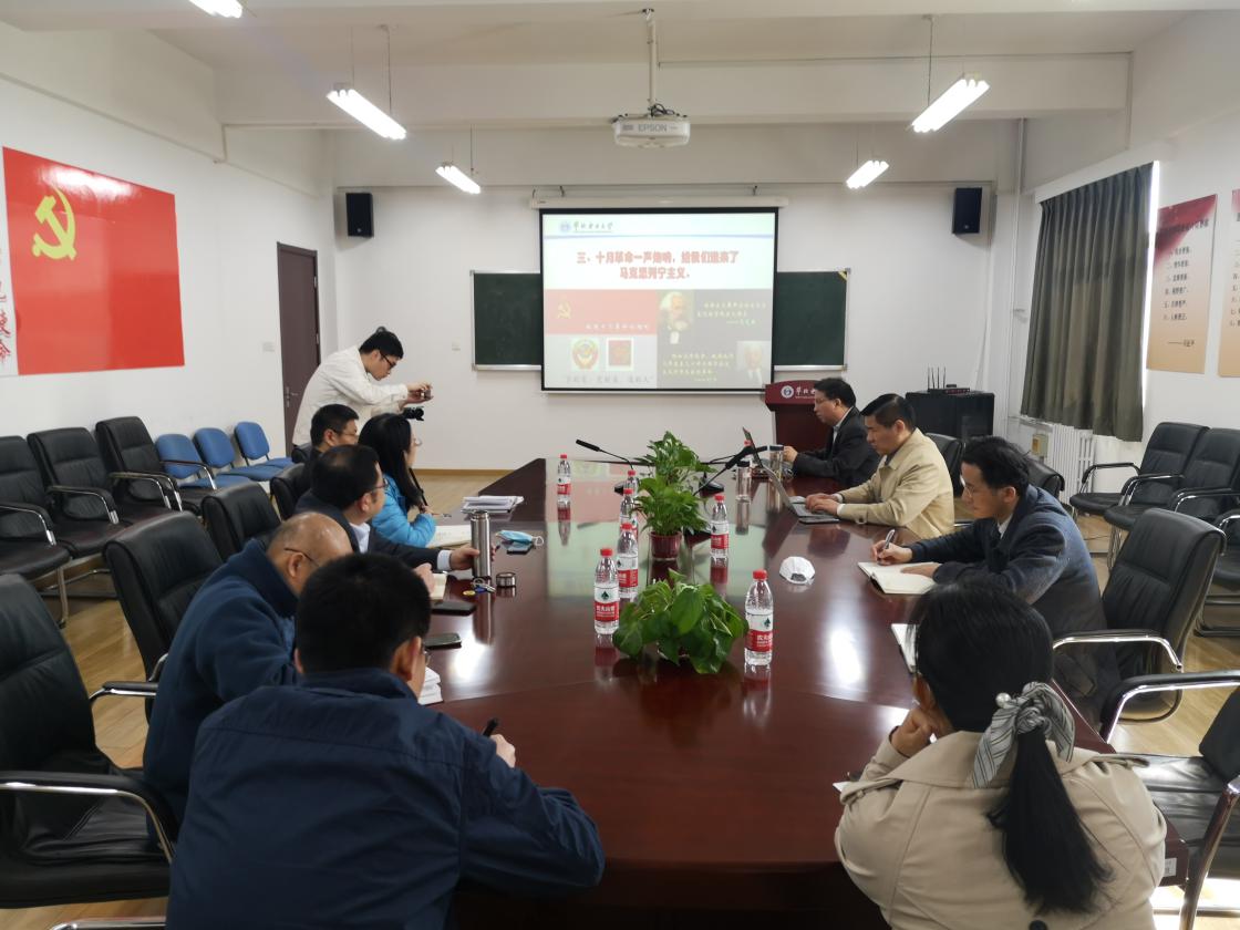 为深入贯彻落实习近平总书记在党史学习教育动员大会上的重要讲话精神,进一步提高政治站位,高标准、高质量开展党史学习教育,4月13日上午,beat365中文登录入口理论学习中心组举行“中国共产党的创立”专题学习(扩大)会议。beat365中文登录入口党总支书记孙平作题为《中国共产党的创立》讲座,学院班子成员、各教师党支部书记、各教研室主任、各科研平台负责人参加会议。本次会议由学院院长王伟主持。
