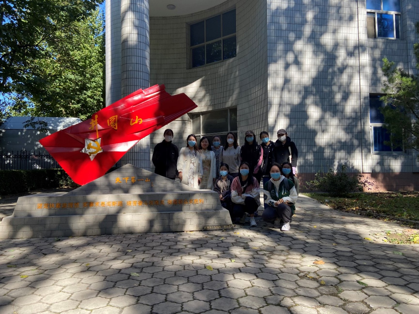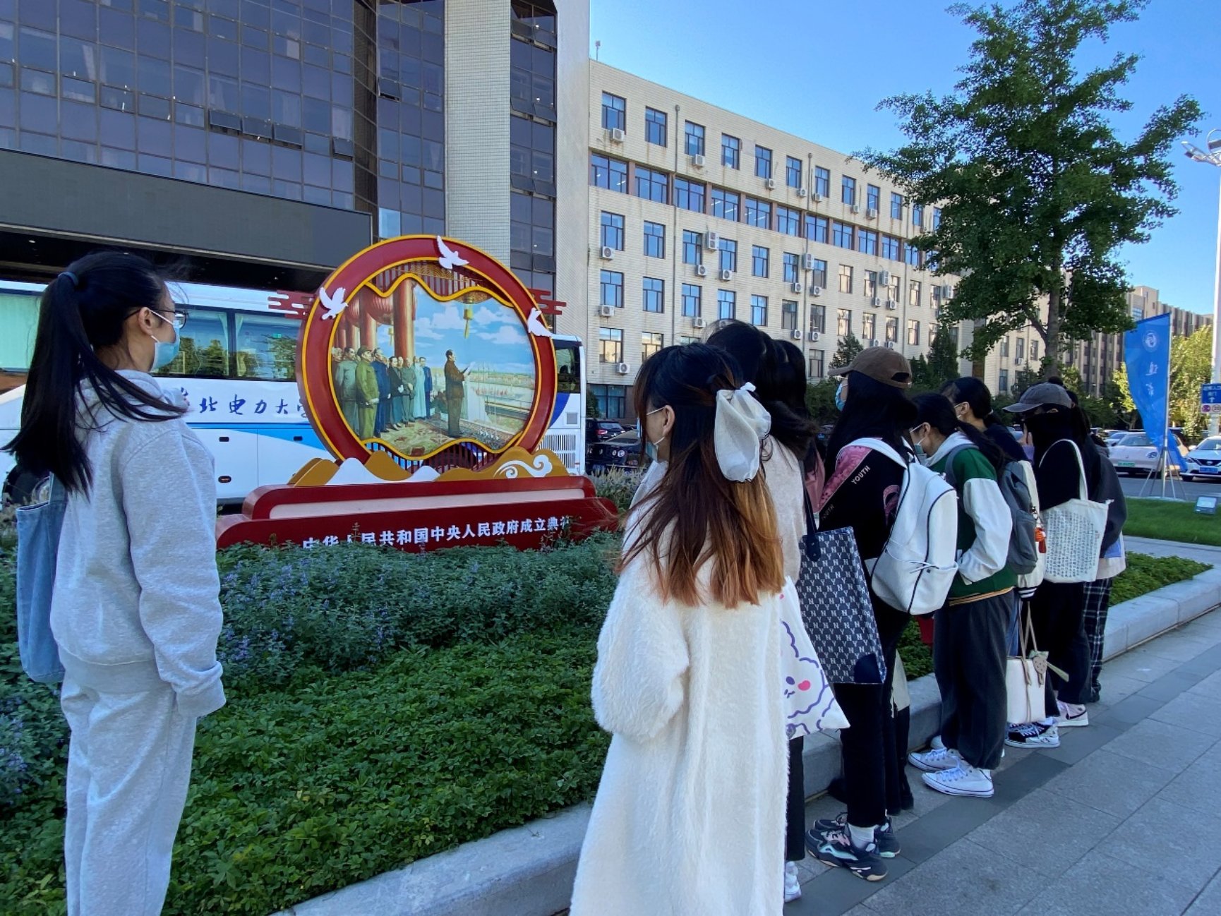 下一个参观打卡地点是“开国大典”党史事件微景观,位于教一楼北侧。1949年10月1日,毛泽东主席在天安门城楼上庄严宣告:“中华人民共和国中央人民政府今天成立了!”从此,中国结束了一百多年来被侵略被奴役的屈辱历史,真正成为了独立自主的国家,中国人民从此站起来了!