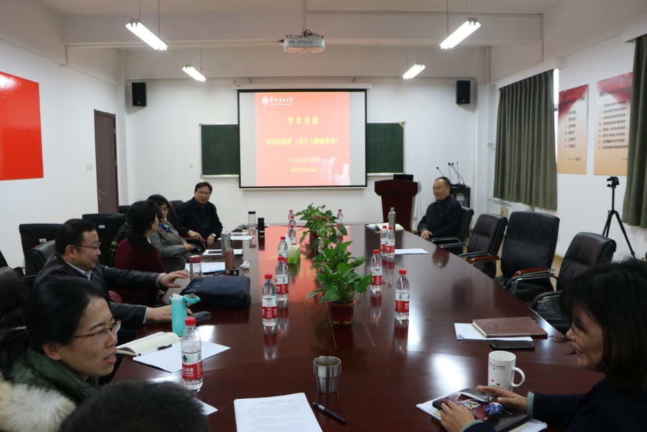 2019年11月8日上午,beat365中文登录入口在会议室举办了学术交流会,主讲人beat365中文登录入口刘玮玮教授以《老年人健康伦理》为主题进行阐述并与大家进行交流,与会人员为beat365中文登录入口的全体教师。