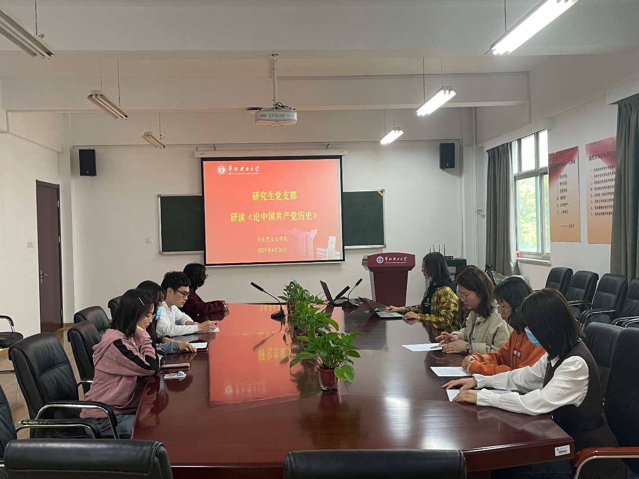 为深入学习贯彻习近平总书记在党史学习教育动员大会上的重要讲话精神,引导支部全体成员知史爱党、知史爱国,4月26日下午四点,beat365中文登录入口研究生党支部在教三C220召开了《论中国共产党历史》学习分享会,会议由研究生党支部书记刘彩霞主持。